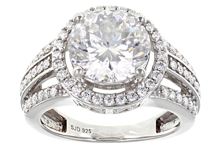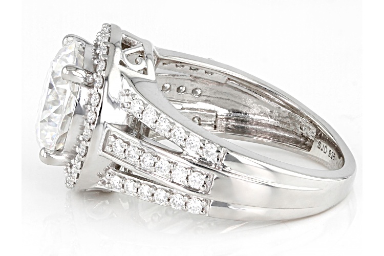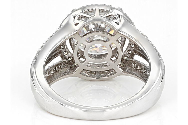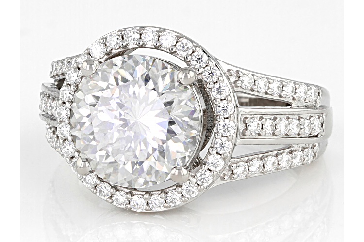 Pre-Owned Moissanite Fire(R) 4.77ctw diamond equivalent weight round Inferno cut(TM) Platineve(R) ring. Measures approximately 9/16" L x 1/16" W and is not sizeable. Actual moissanite weight is 4.25ctw. . This product may be a customer return, vendor sample, or on-air display and is not in its originally manufactured condition. It may not be new. In some instances, these items are repackaged by JTV.