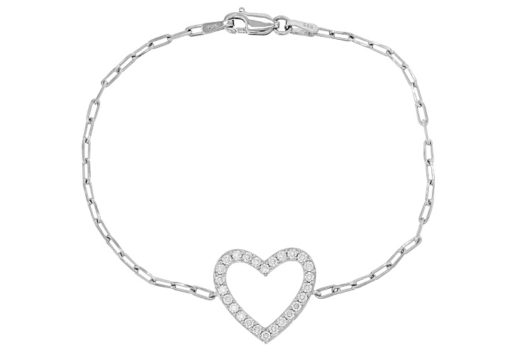 • MOISSANITE FIRE® .78CTW DEW ROUND PLATINEVE® HEART & PAPERCLIP BRACELET - Size 7.5
