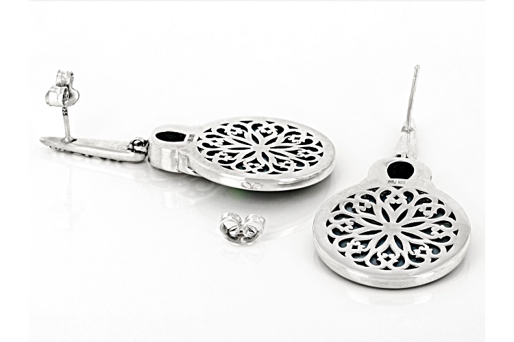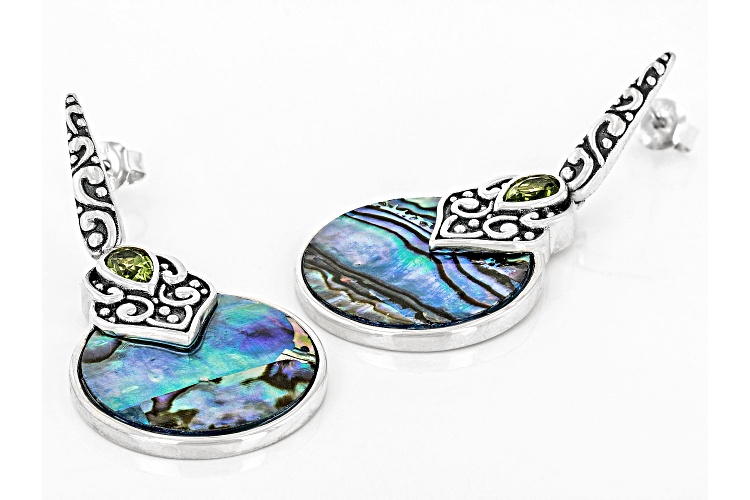 Pacific Style™ 20mm Multi-Color Abalone Shell With 0.77ctw Peridot Sterling Silver Oxidized Earrings. Measures approximately 1.73"L x 0.86"W. Push backings.
