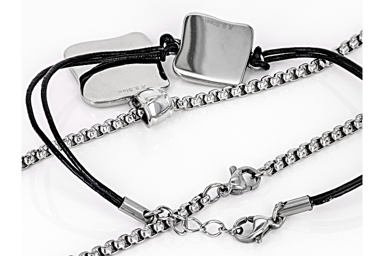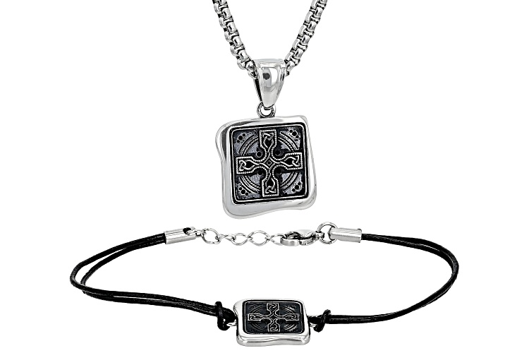 Artisan Collection of Ireland™ Celtic Cross Stainless Steel Pendant/Chain & Leather Bracelet Set