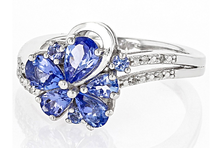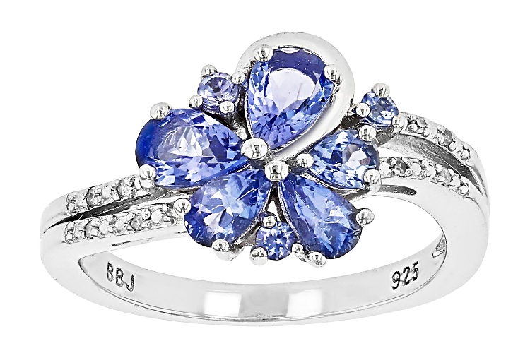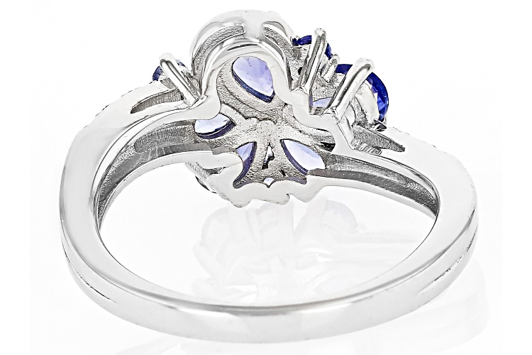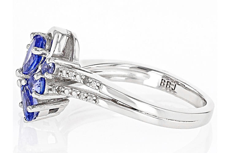 Pre-Owned 1.24ctw Mixed Shapes Tanzanite With 0.02ctw White Diamond Accent Rhodium Over Silver Ring - Size 10