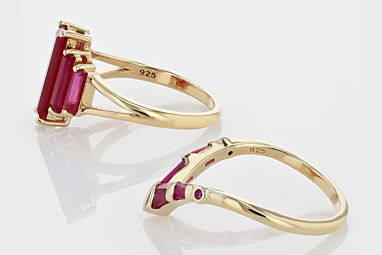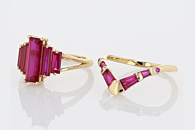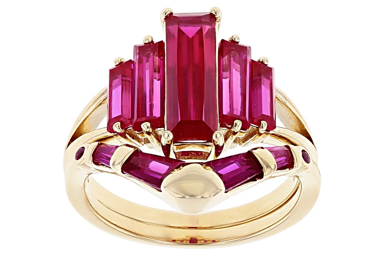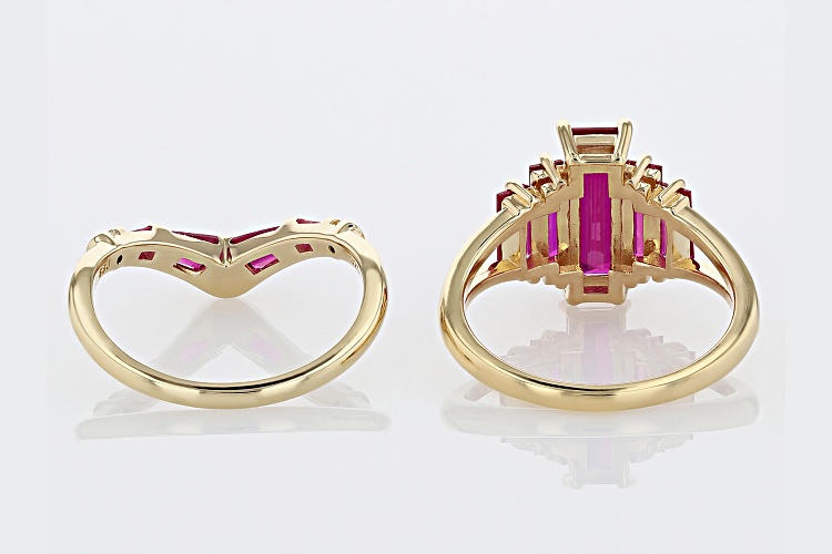 3.23ctw Lab Created Ruby 18k Yellow Gold Over Sterling Silver Set Of 2 Stackable Rings - Size 9