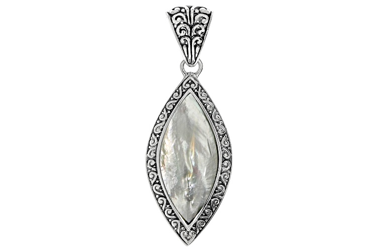 Artisan Collection of Bali™ 25x10mm Marquise Mother-of-Pearl Sterling Silver Pendant