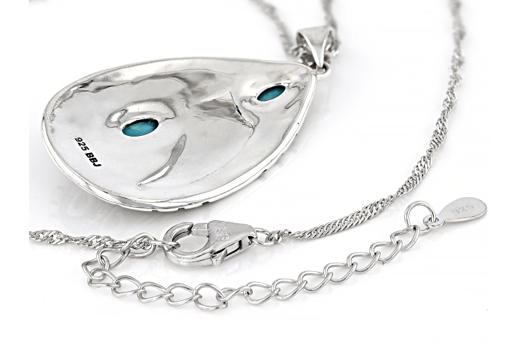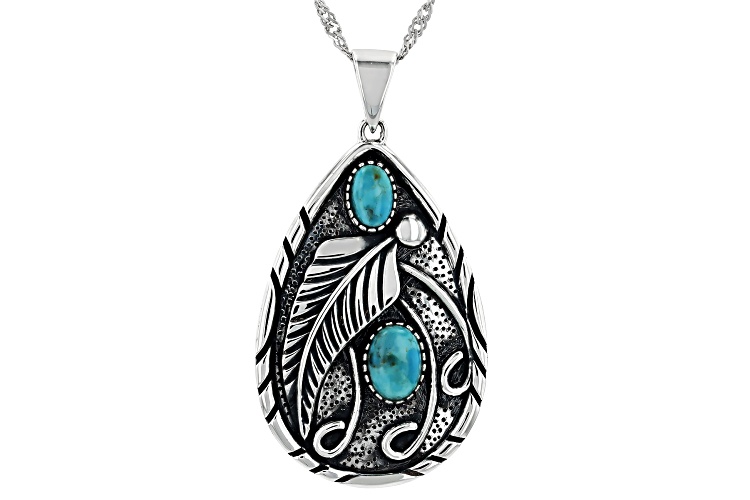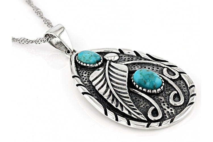 Southwest Style by JTV™ Oval Blue Turquoise Sterling Silver Feather Pendant With Chain