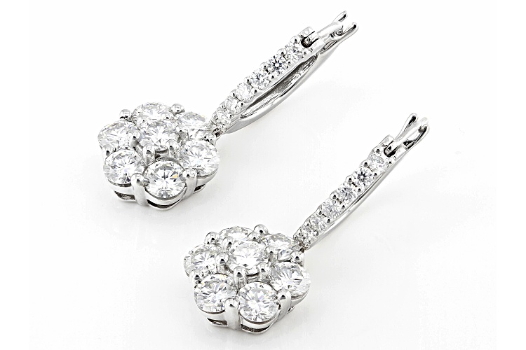 MOISSANITE FIRE(R) 3.64CTW DEW ROUND BRILLIANT PLATINEVE(R) EARRINGS