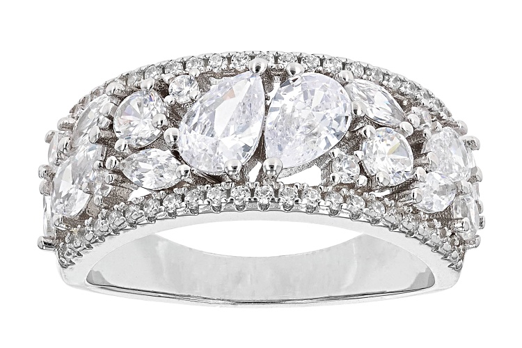 Pre-Owned Bella Luce® white diamond simulant 3.14ctw pear, marquise, and round, platinum over sterling silver ring. Measures approximately 0.88" L x 0.31" W and is not sizable. The diamond equivalent weight is 1.90ctw.. This product may be a customer return, vendor sample, or on-air display and is not in its originally manufactured condition. It may not be new. In some instances, these items are repackaged by JTV.
