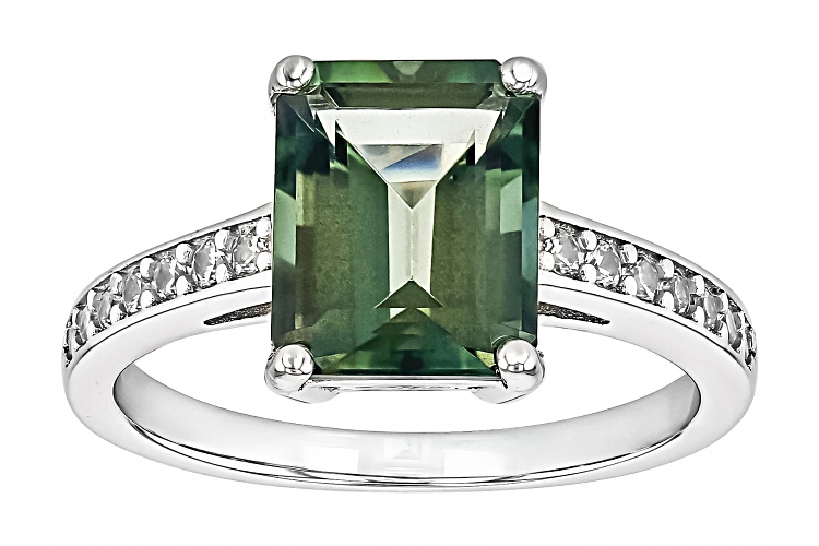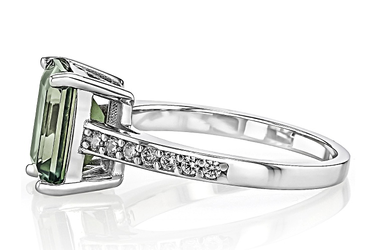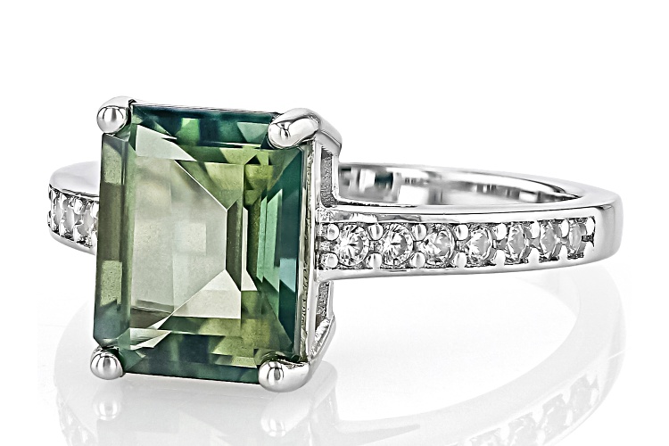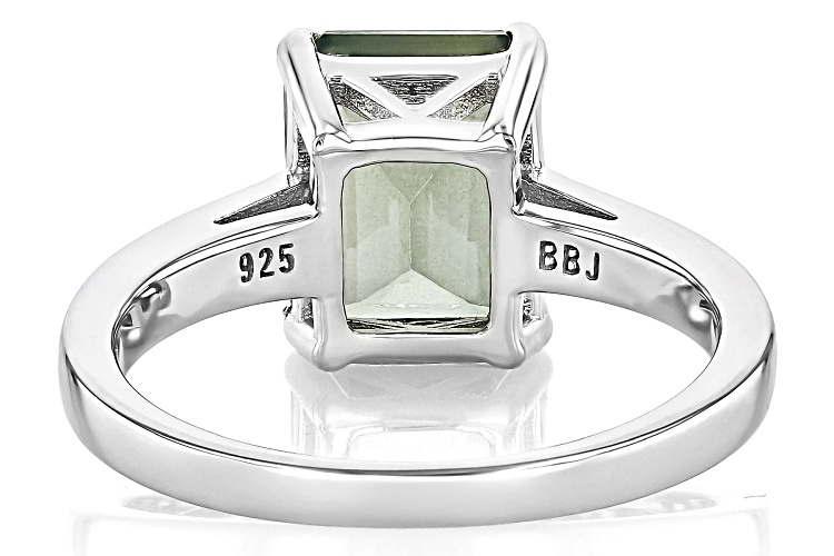 • 2.68ct Rectangular Octagonal Green Labradorite With .28ctw White Zircon Rhodium Over Silver Ring - Size 9