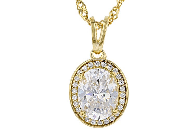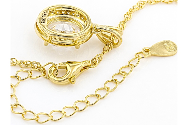Bella Luce® white diamond simulant 3.63ctw round, Eterno™ 18k yellow gold over sterling silver pendant with chain. Pendant measures approximately 0.75" L x 0.38" W and has a 1mm bail. Also includes an 17.5"-18 inch singapore chain with 2" extender and a lobster claw closure. The diamond equivalent weight is 1.99ctw.