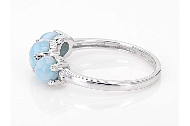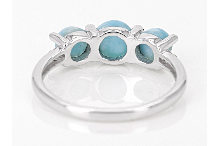 • 5-6mm Blue Larimar Rhodium Over Sterling Silver 3-Stone Ring - Size 7