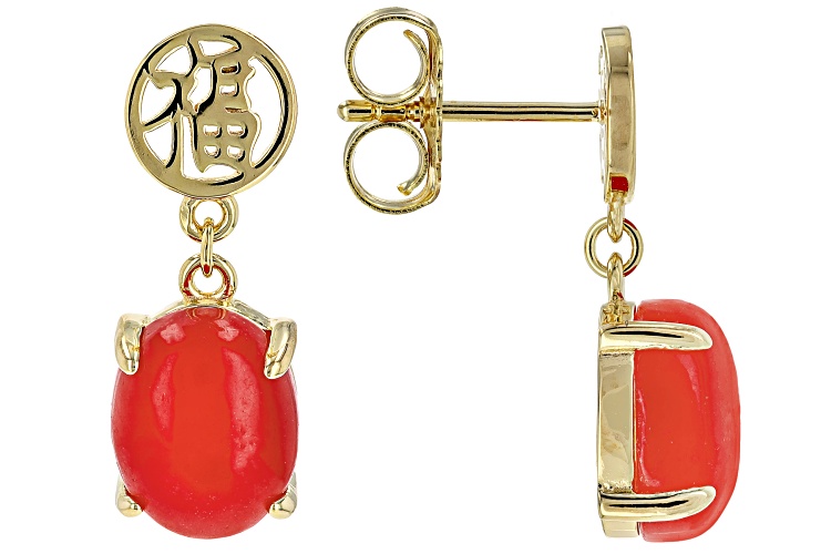 10x8mm Red Jadeite 18k Yellow Gold Over Sterling Silver Earrings
