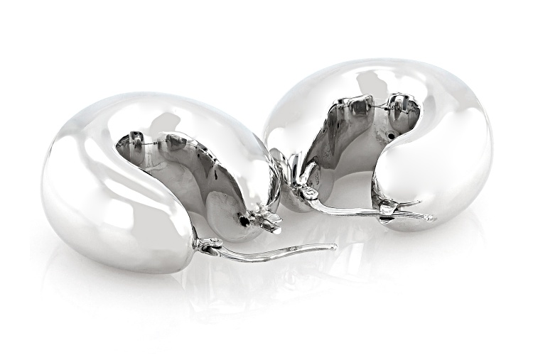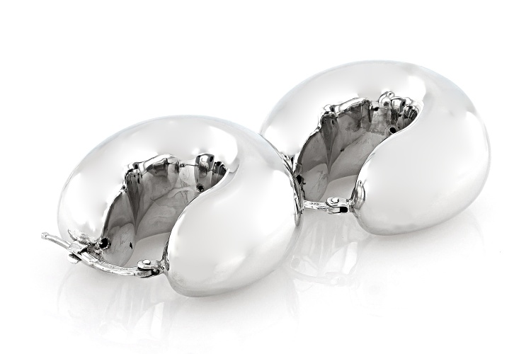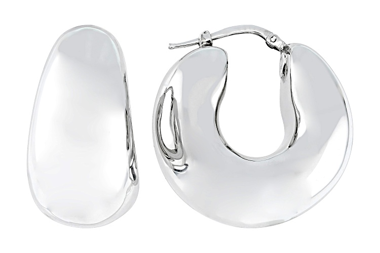 Rhodium Over Sterling Silver Hoop Earrings. Measure approximately 1 1/8" L x 9/16" W and have saddleback backings.