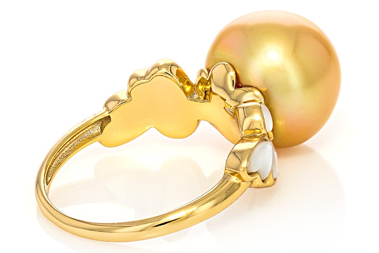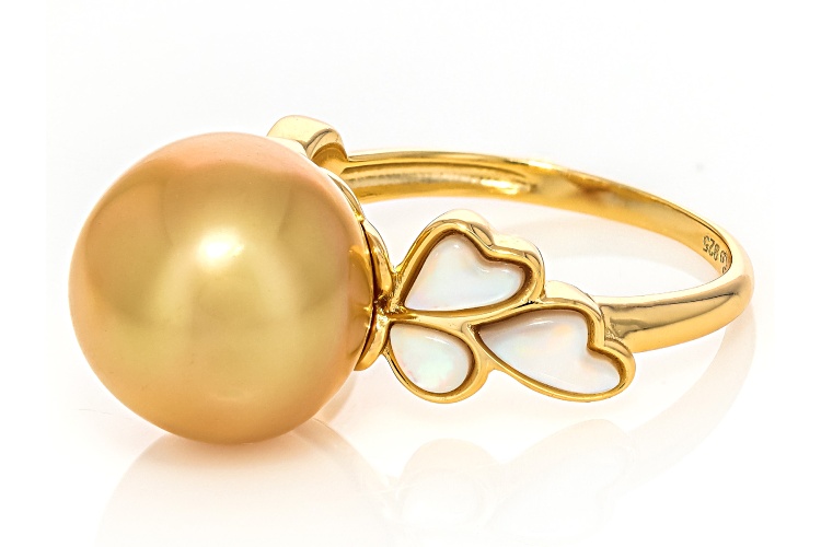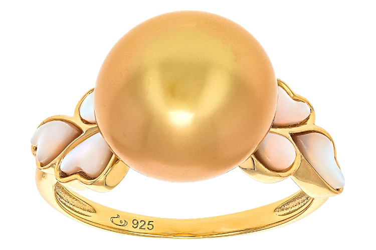 • 11mm Golden Cultured South Sea Pearl With South Sea Mother-Of-Pearl 18k Yellow Gold Over Silver Ring - Size 12