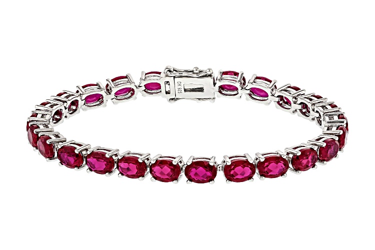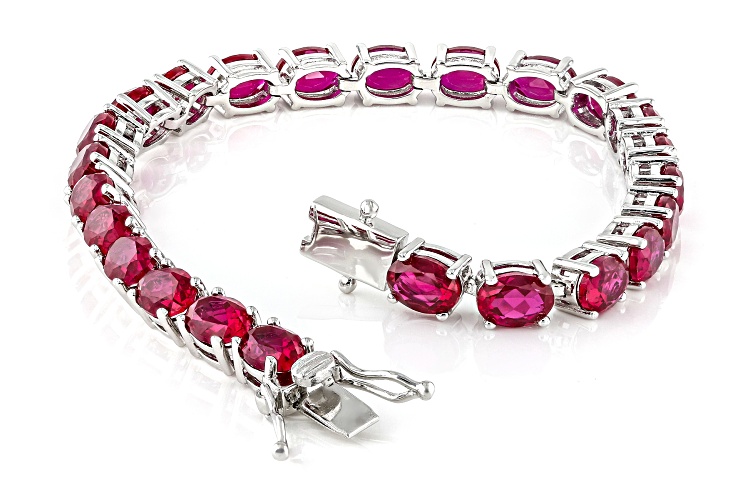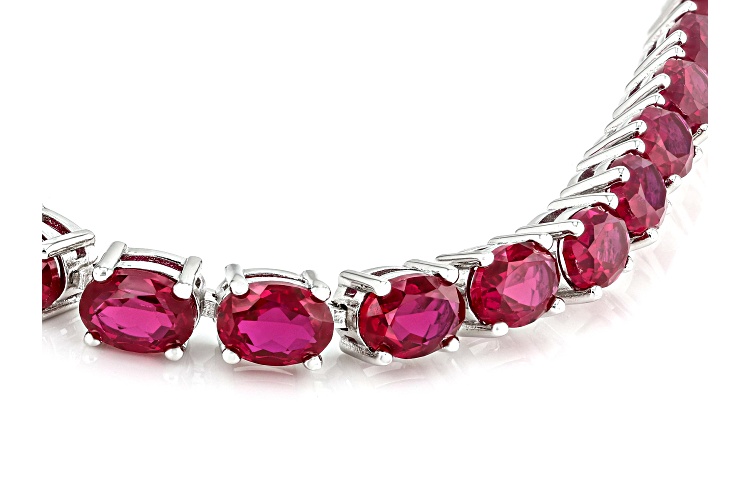 26.69ctw Lab Created Ruby Rhodium Over Sterling Silver Tennis Bracelet - Size 8