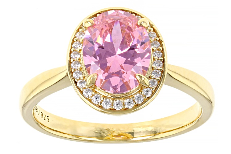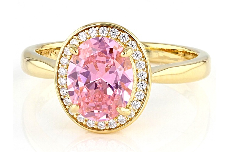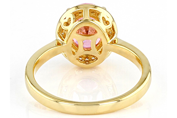 Bella Luce ® pink and white diamond simulants 3.30ctw round, Eterno™ 18k yellow gold over sterling silver ring. Measures approximately 0.81" L x 0.44" W and is not sizeable. The diamond equivalent weight is 1.99ctw.