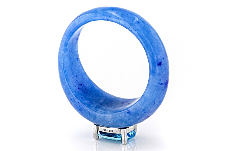 Blue Jadeite with 1.25ct Swiss Blue Topaz Rhodium Over Sterling Silver Ring - Size 6