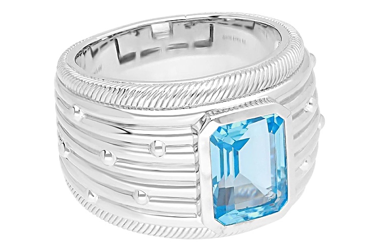 Judith Ripka "Ballroom" 2.70ct Swiss Blue Topaz Rhodium Over Sterling Silver Band Ring - Size 5