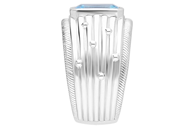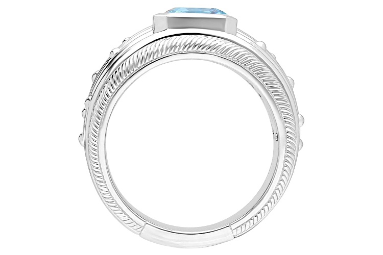 Judith Ripka "Ballroom" 2.70ct Rectangular Octagonal Swiss Blue Topaz Rhodium Over Sterling Silver Band Ring. Measures Approximately 0.5"L x 0.87"W. Not Sizeable.