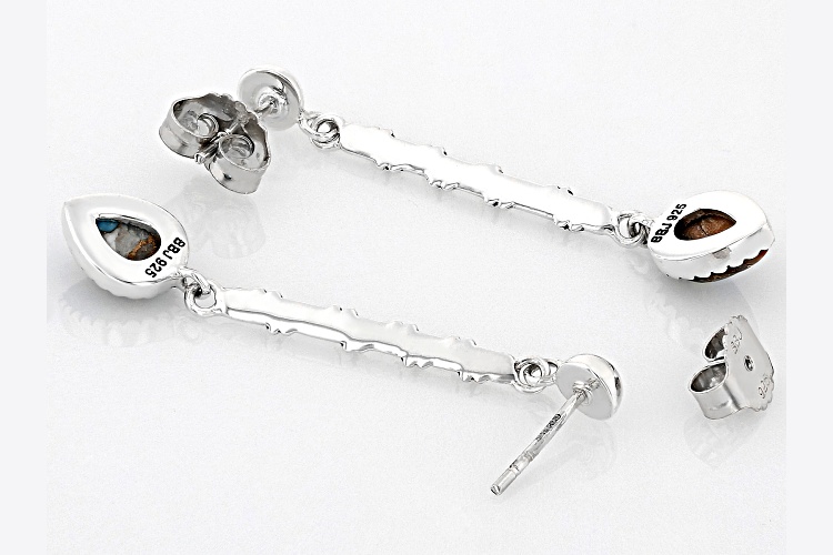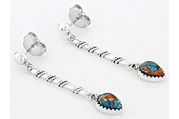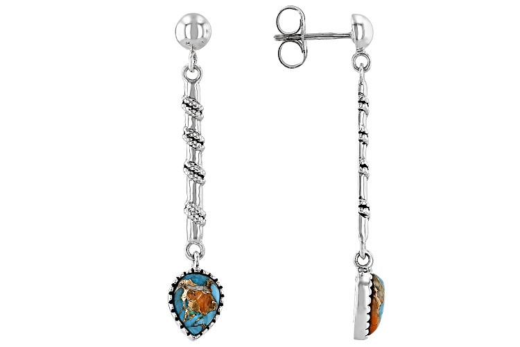 Southwest Style by JTV™ 8x6mm Blended Composite Turquoise & Spiny Oyster Shell Sterling Silver Dangle Earrings. Measures Approximately 1.74"L x 0.30"W. Push Back Backings. Oxidized. Color and Pattern May Vary. This product contains composite turquoise. This means separate pieces of turquoise were bound together.