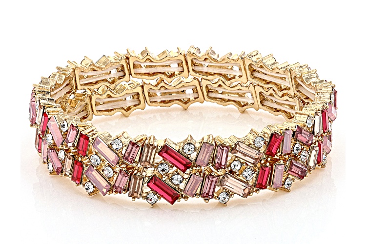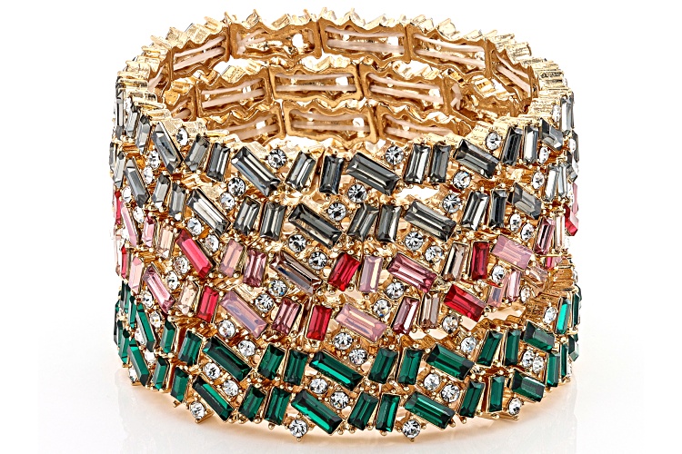 Off Park® Collection, Multi-Color Crystal Gold Tone Set of 6 Stretch Bracelets. Measures approximately 6.5"L x .32"W. Together they measure 1.82"W. No closure.