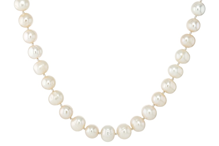 9.5mm White Cultured Freshwater Pearl Rhodium Over Sterling Silver Necklace - Size 22