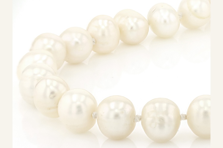 • 9.5mm White Cultured Freshwater Pearl Rhodium Over Sterling Silver Necklace - Size 22