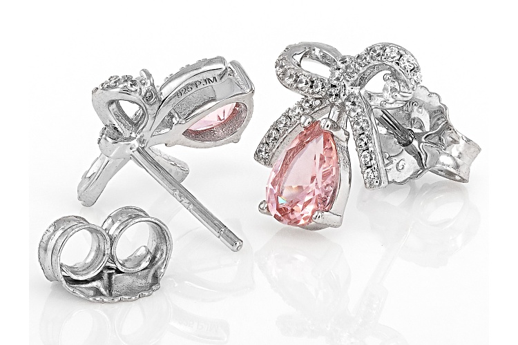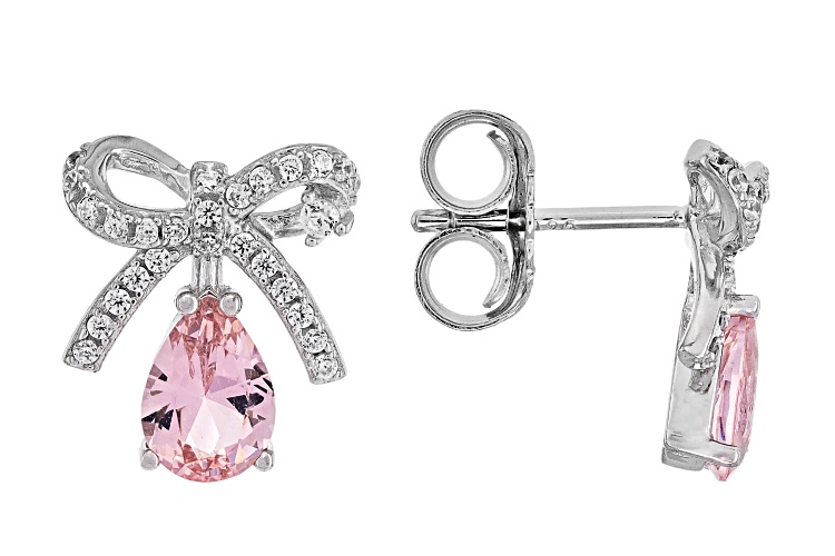 Bella Luce® Esotica™ 1.66ctw Morganite And White Diamond Simulants Rhodium Over Sterling Silver Bow Earrings. Measures Approximately 0.49"L x 0.43"W. Push Backings.