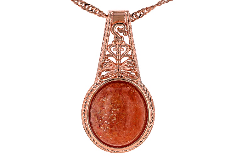 • Timna Jewelry Collection™ 14x12mm Oval Sunstone Copper Pendant with Chain