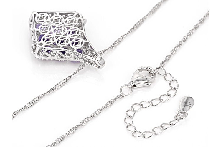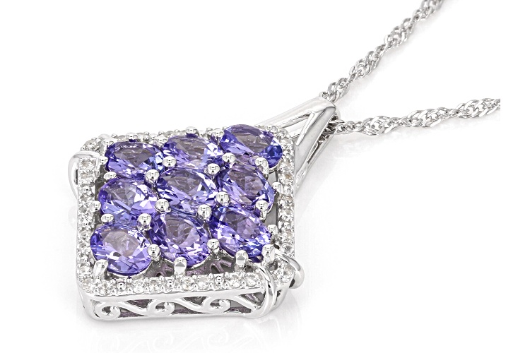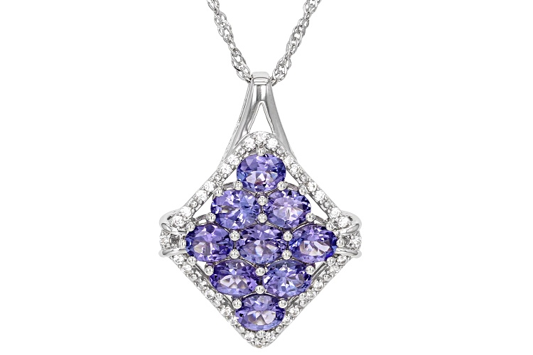 • 3.06ctw Tanzanite With White Zircon Rhodium Over Sterling Silver Pendant With Chain