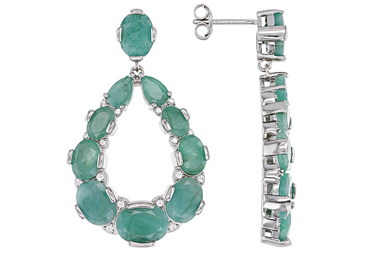 12.00ctw Emerald With 0.15ctw White Zircon Rhodium Over Sterling Silver Earrings.