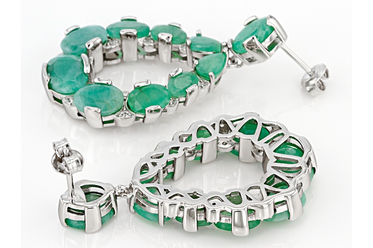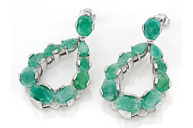• 12.00ctw Emerald With 0.15ctw White Zircon Rhodium Over Sterling Silver Earrings.