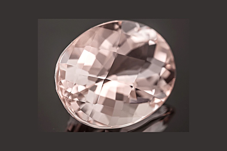 Cor-de-Rosa Morganite™ minimum 6.78ct 15x10.76mm oval checkerboard cut. The gemstone was mined in Mozambique and cut in India.
