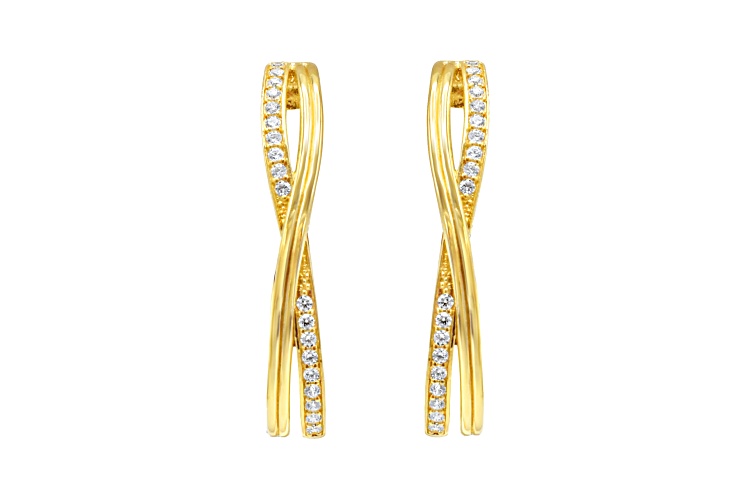 Judith Ripka 1.06ctw Round Bella Luce Diamond Simulant 14K Gold Clad Earrings. Measures Approximately 1.13"L x 0.25"W. Omega Backs.