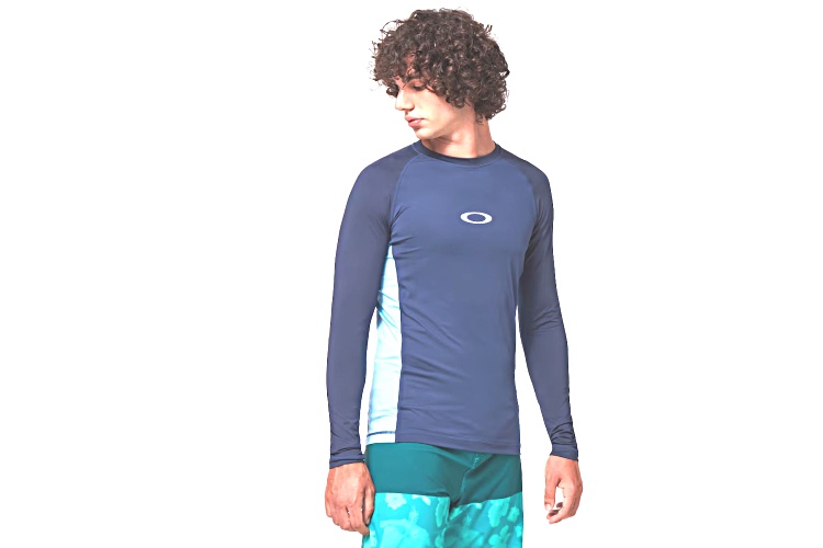 Oakley Men's Universal Blue Color Block Swim Rashguard in Size Medium