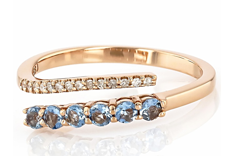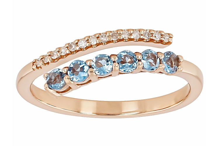 0.38ctw Santa Maria Aquamarine With 0.06ctw White Diamond 10k Rose Gold Bypass Ring - Size 7