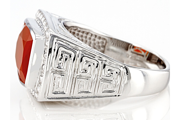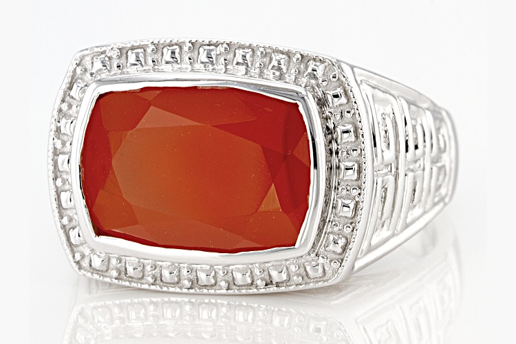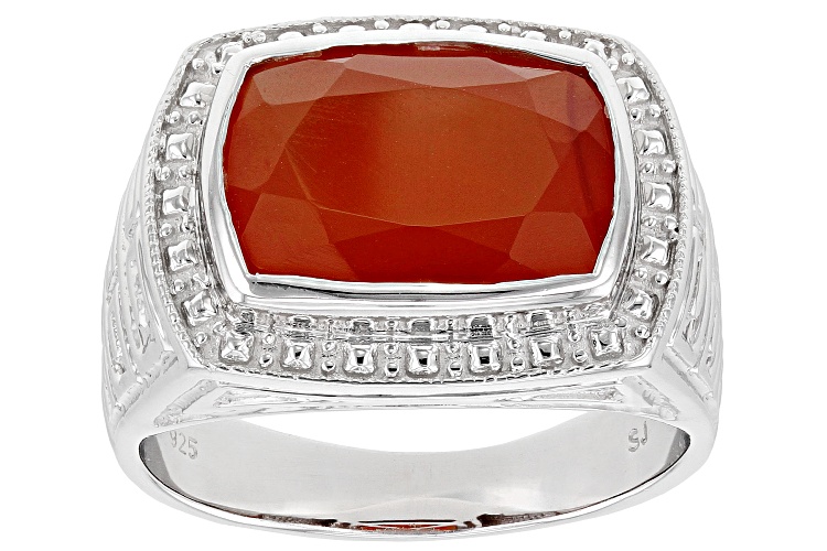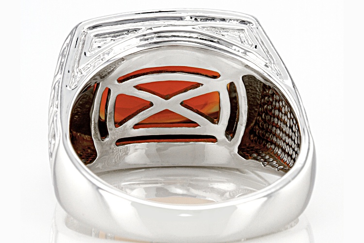 14x10mm Rectangular Cushion Orange Carnelian Rhodium Over Sterling Silver Men's Ring. Measures Approximately 0.59"L x 0.43"W. Not Sizeable. Finished Undergallery.