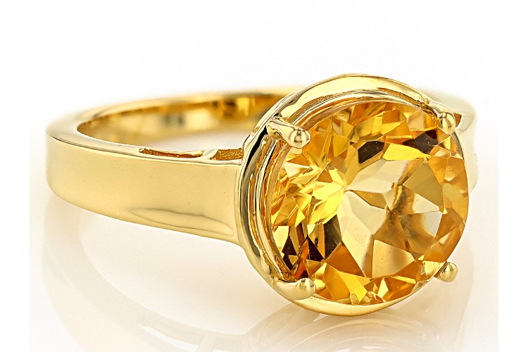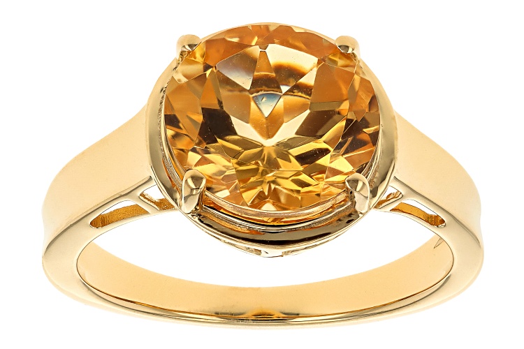 2.70ct Round Yellow Citrine 18k Yellow Gold Over Sterling Silver Ring. Measures Approximately 0.46"L x 0.45"W. Not Sizeable.