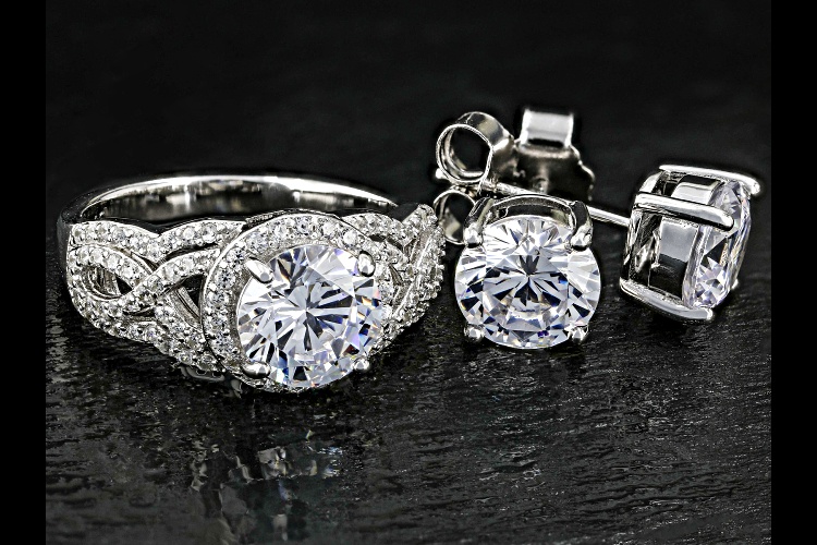 Bella Luce® 11.29ctw Rhodium Over Sterling Silver Ring and Earrings