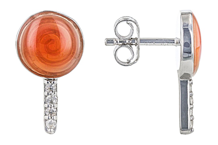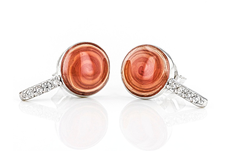 Pink Enamel With 0.10ctw White Zircon Rhodium Over Sterling Silver Children's Lollipop Earrings