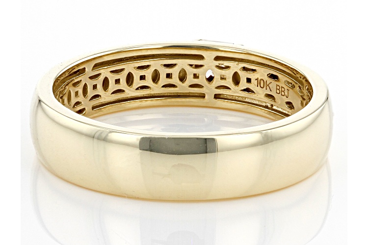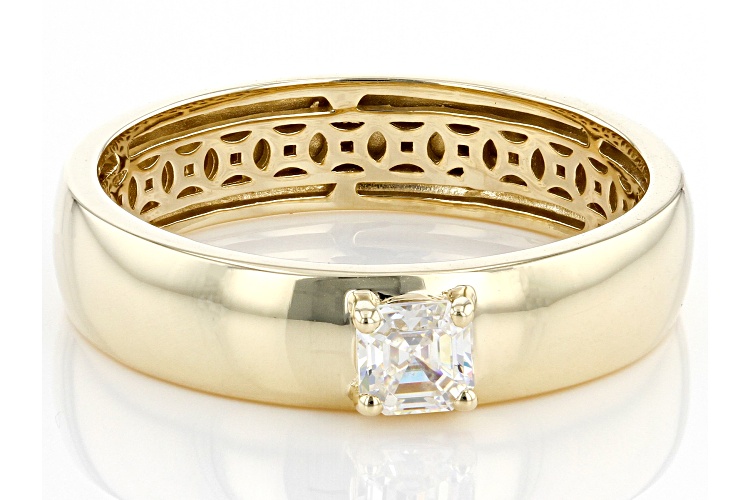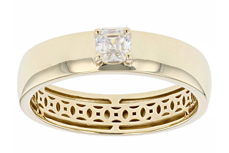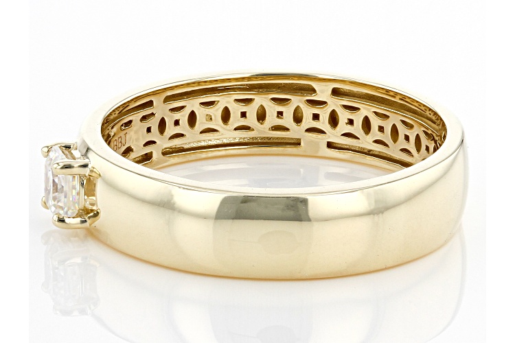 Pre-Owned .35ct round lab created Strontium Titanate 10k yellow gold mens solitaire ring. Measures approximately .20" L x .20" W.. This product may be a customer return, vendor sample, or on-air display and is not in its originally manufactured condition. It may not be new. In some instances, these items are repackaged by JTV.