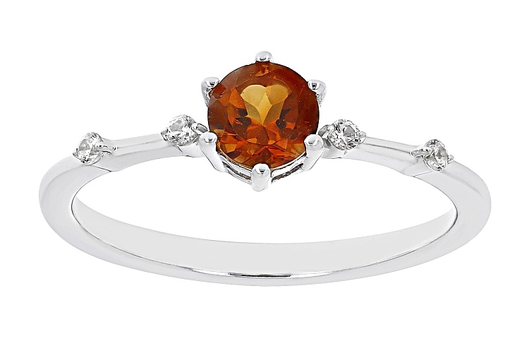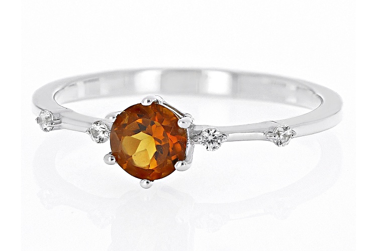 • .42ct Madeira Citrine With .07ctw White Zircon Rhodium Over Sterling Silver November Birthstone Ring - Size 7