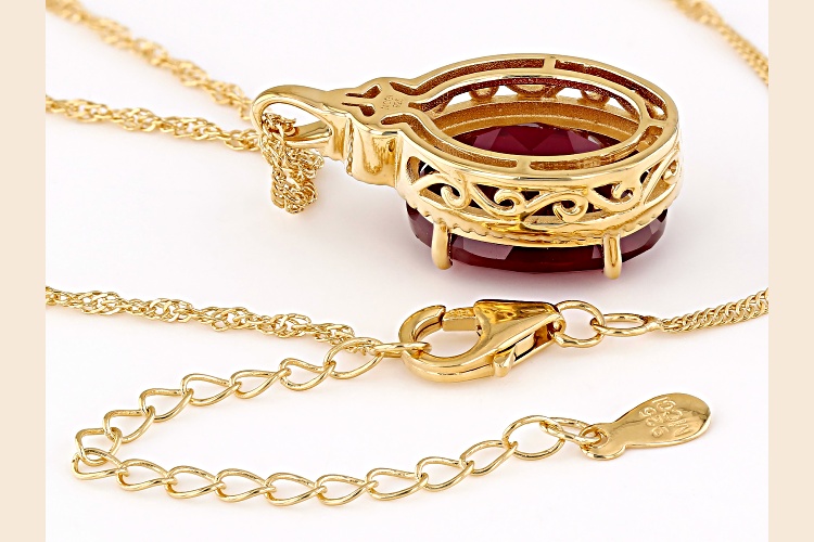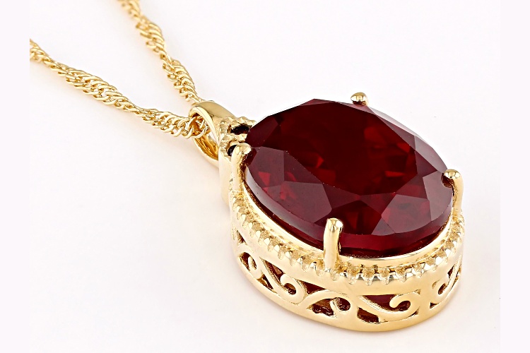 10.80ct Lab Ruby with 0.04ctw Red Diamonds 18k Yellow Gold over Sterling Silver Pendant with Chain