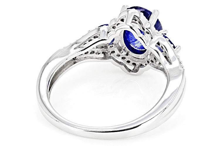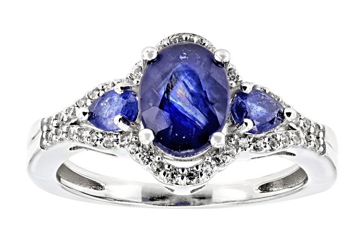 • 1.57ctw Mahaleo® Blue Sapphire With .28ctw White Zircon Rhodium Over Silver Ring - Size 9
