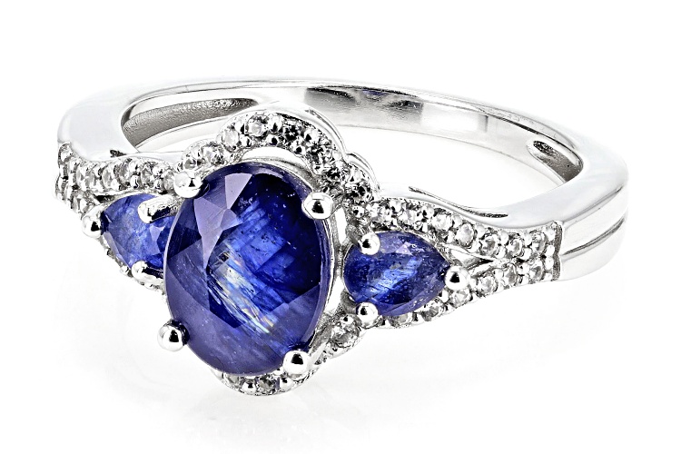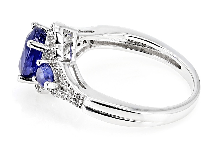 1.20ct Oval 0.37ctw and Pear shape Mahaleo® Blue Sapphire With 0.28ctw Round White Zircon Rhodium Over Sterling Silver Ring. Measures Approximately 0.23"L x 0.42"W. Not sizeable. Accent stones primarily zircon.
