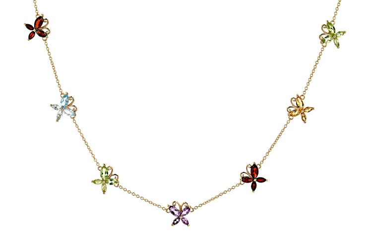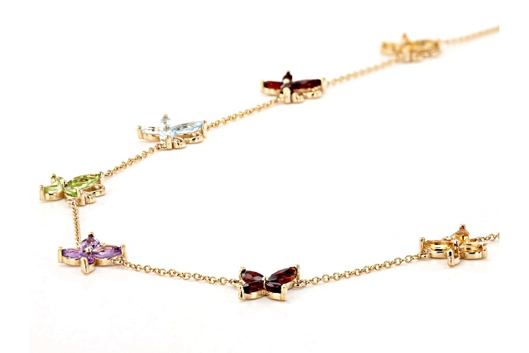• 4.34ctw Marquise Multi-Gemstone 18k Yellow Gold Over Sterling Silver Butterfly Necklace