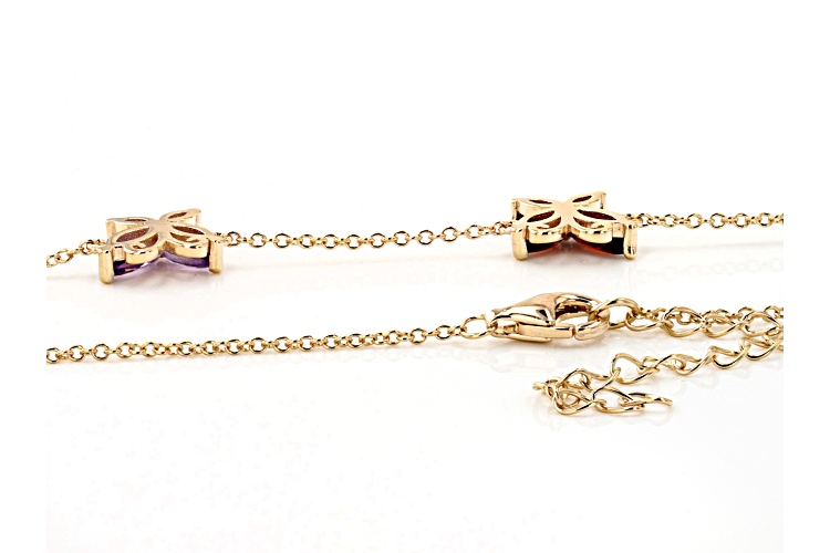 0.44ctw Marquise Purple Amethyst, 1.16ctw Marquise Glacier Topaz™ , 0.74ctw Marquise Yellow Citrine, 1.07ctw Marquise Vermelho Garnet™, 0.93ctw Marquise Manchurian Peridot™ 18K Yellow Gold Over Sterling Silver Butterfly Necklace. Measures Approximately 24"-25"L x 0.39"W. Lobster Claw Closure with 2" Extender.