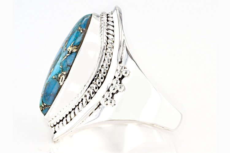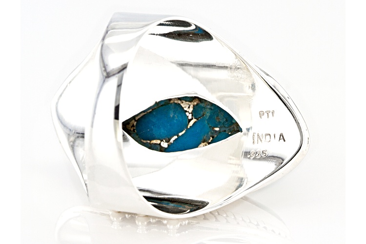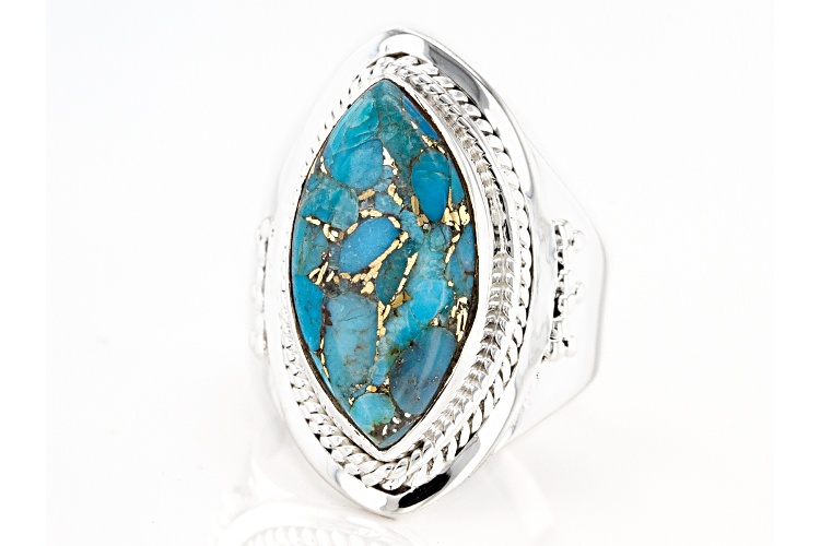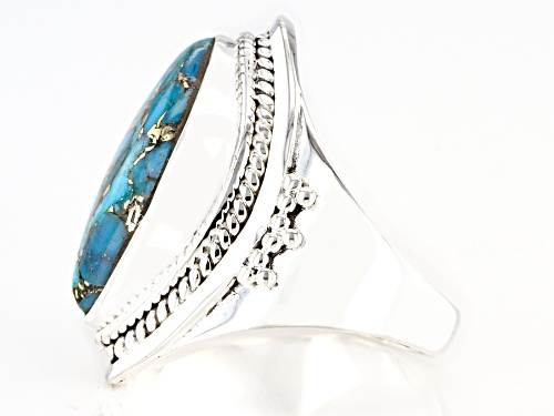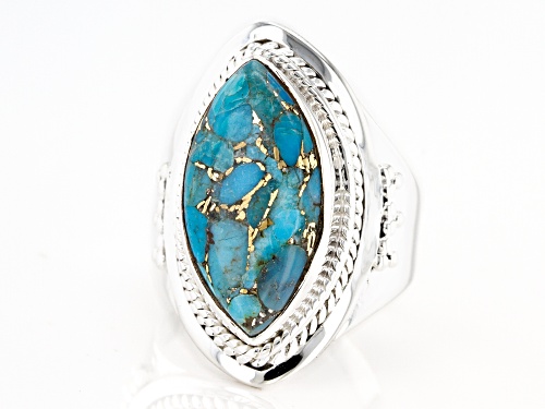 Pre-Owned 20x10mm Marquise Cabochon Blue Turquoise Sterling Silver Ring - Size 8