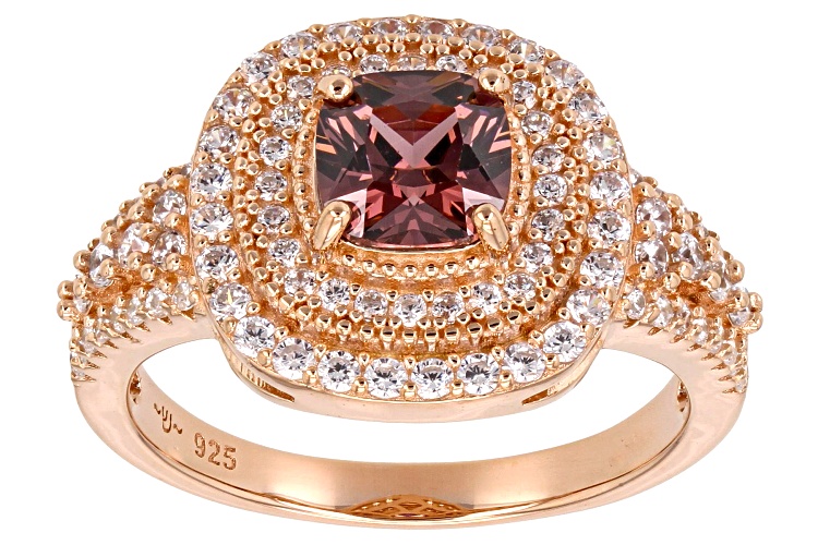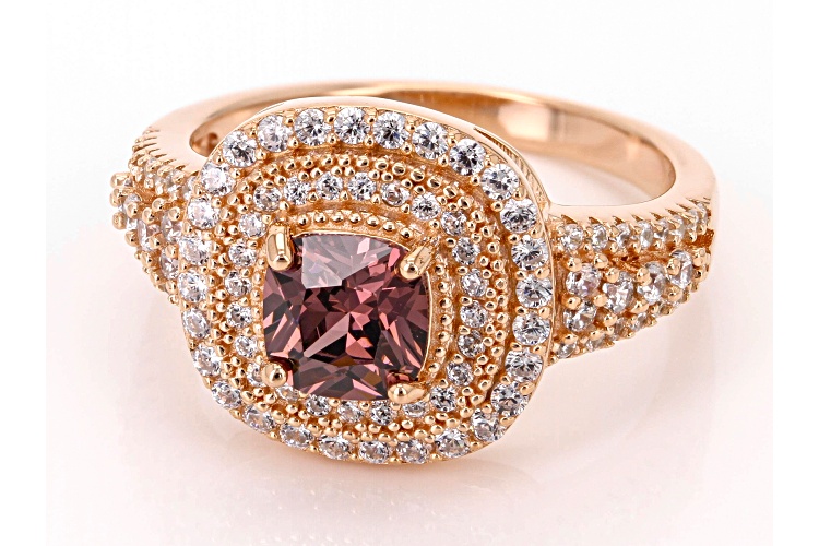 Bella Luce® Esotica™ blush zircon and white diamond simulants 2.66ctw square cushion and round, Eterno™ 18k rose gold over sterling silver ring. Measures approximately 0.81" L x 0.50" W and is not sizeable.