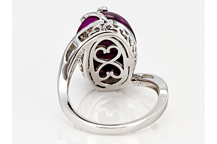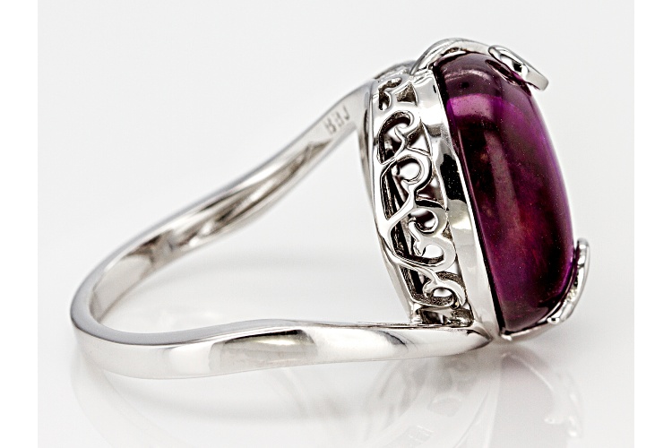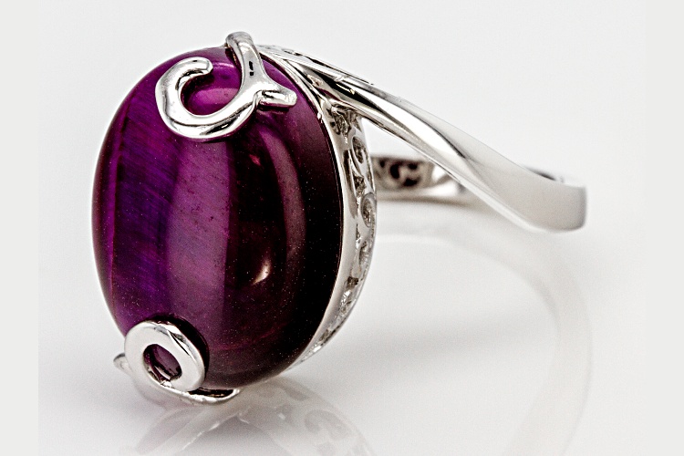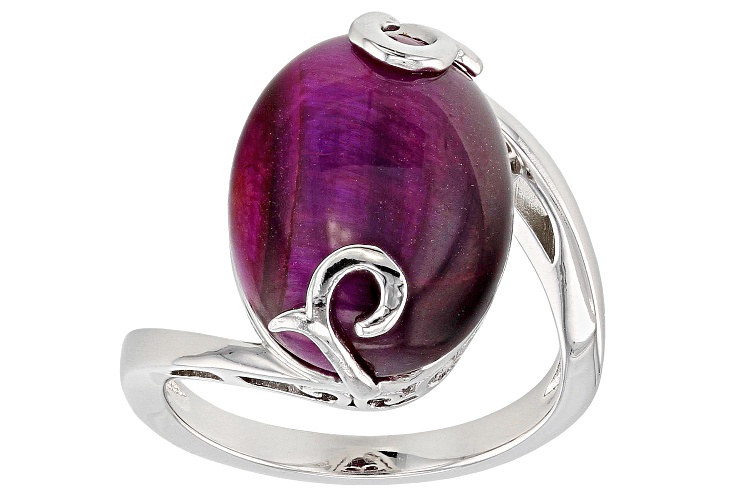 16X12MM OVAL CABOCHON PINK TIGER'S EYE SOLITAIRE RHODIUM OVER STERLING SILVER RING - Size 6