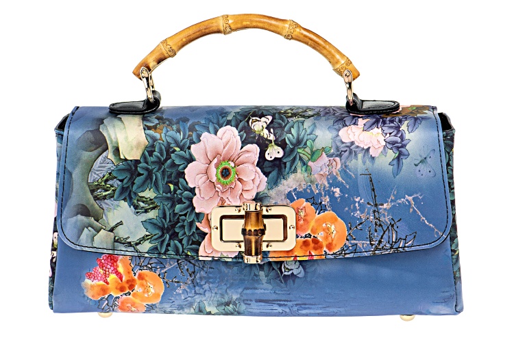 Pre-Owned Pacific Style™ Floral Bamboo Handle Gold Tone Fabric Clutch. Measures Approximately 12"L x 3"W x 6"H.. This product may be a customer return, vendor sample, or on-air display and is not in its originally manufactured condition. It may not be new. In some instances, these items are repackaged by JTV.