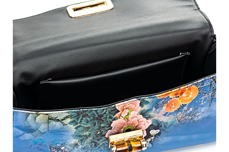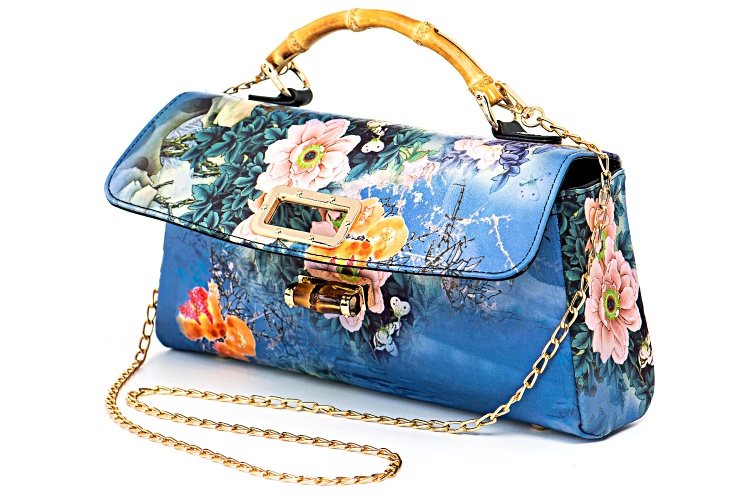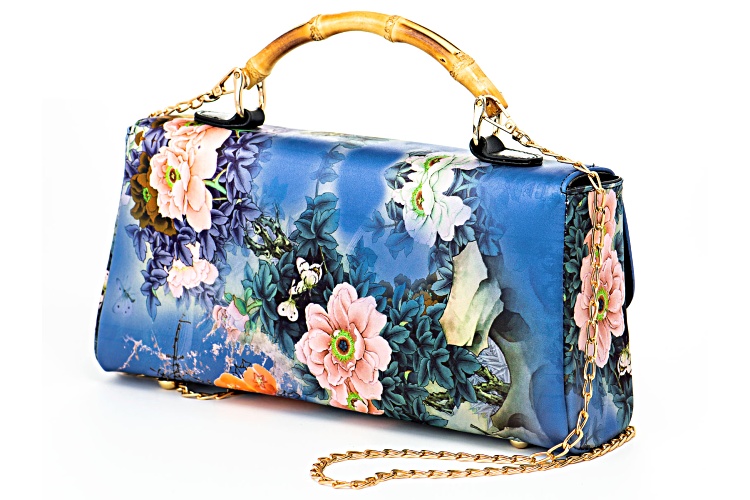 • Pre-Owned Pacific Style™ Floral Bamboo Handle Gold Tone Fabric Clutch